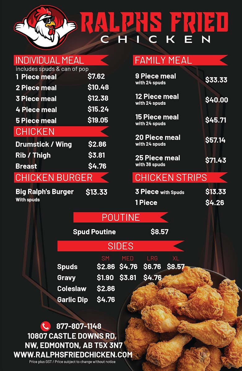 Welcome to Ralph's Fried Chicken, a culinary haven located at 10807 Castle Downs Rd NW, Edmonton. This gem specializes in crispy fried chicken, ensuring each bite is bursting with flavor. The menu boasts an array of savory options, including classic chicken strips, perfectly seasoned to satisfy any craving.
